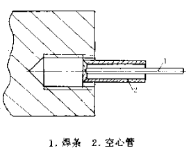 如圖所示,取一外徑比欲取螺釘?shù)讖铰孕〉目招墓芄茏觾?nèi)徑應(yīng)比焊條略大。將管子內(nèi)孔倒45°角。然后,將管子倒角端緊貼欲取桿端面。電焊條從管內(nèi)孔伸進(jìn)從里面焊牢。冷卻后用管鉗旋出。內(nèi)孔仍保證完好如初,不影響使用。用此法取出螺釘,都不會(huì)壞孔、爛扣。用此法也可取斷銷子。
